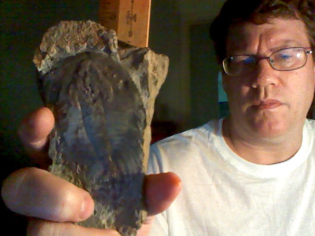 Here in the Lancaster County Kinzers I was fortunate enough to find a very defined specimen of what scientists are calling an unknown brown algae; or a soft coral??? Experts are viewing it now...516 million years old from our Cambrian shallow sea that once spread across lower Larentia...This specimen, quite possibly, could be a new species...as of yet, it can't be found in the Literature...It represents soft-bodied fossilization in that these algae are extremely rare! Contact silverfordinc@yahoo.com for more details